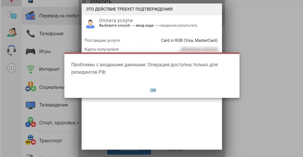 - проследите за тем, чтобы в процессе выполнения привязки личные данные в обоих системах точно совпадали. Вводится ФИО, личный номер телефона, номер паспорта, а также есть возможность настроить лимит переводов;