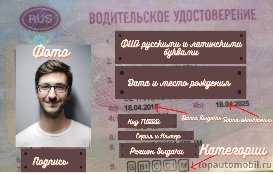 Расшифровка водительского удостоверения нового образца по пунктам