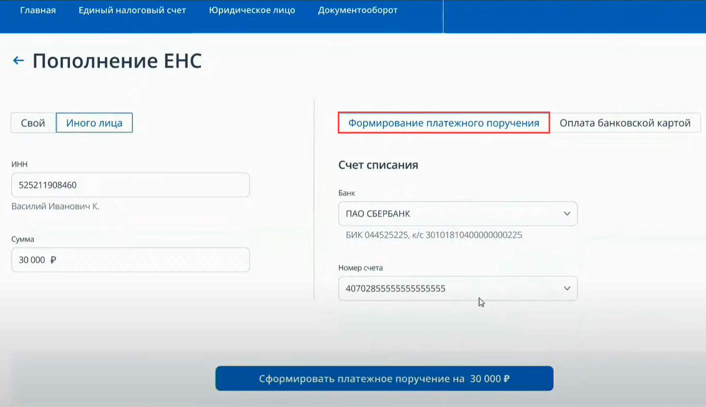 Можно пополнить свой ЕНС или иного лица: