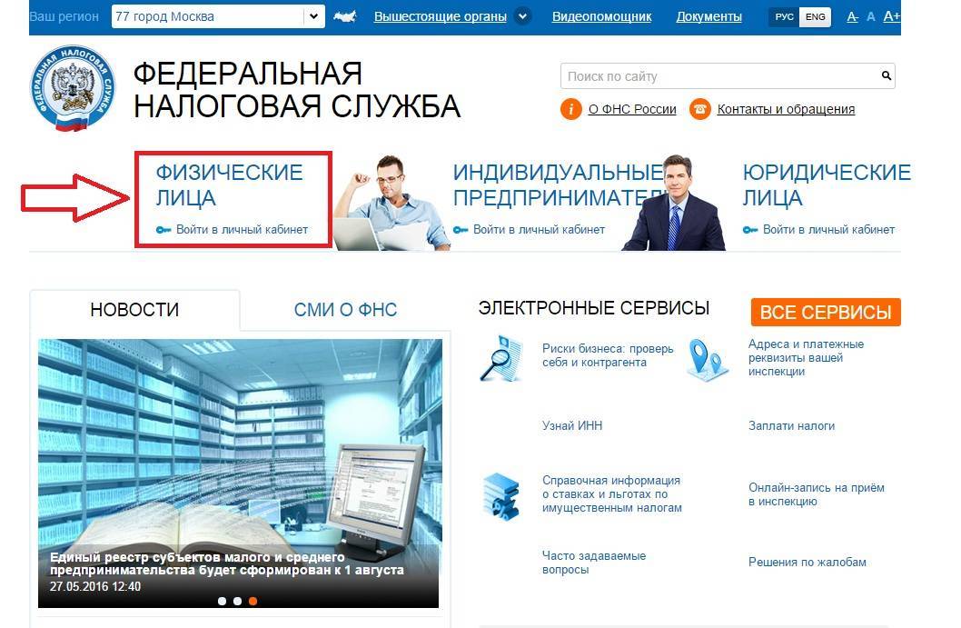 - с помощью услуги от ФНС России на официальном сайте – Личного кабинета для физлиц;