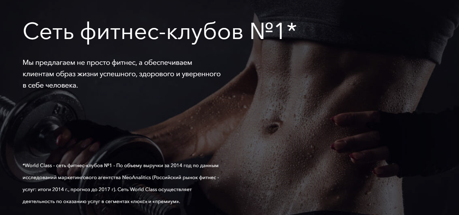 Эмоциональные УТП могут удачно сочетаться с рациональными, дополняя друг друга. На сайте WorldClass качественное «Сеть фитнес-клубов № 1» доказывает авторитет компании, а эмоциональное «Обеспечиваем клиентам образ жизни успешного, здорового и уверенного в себе человека» играет как призыв к действию.