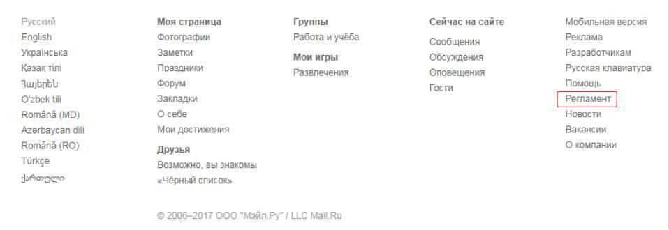 В связи с этим рекомендуем открыть какую-нибудь внутреннюю страницу, например «Гости» и в самом низу нажать на ссылку «Регламент».