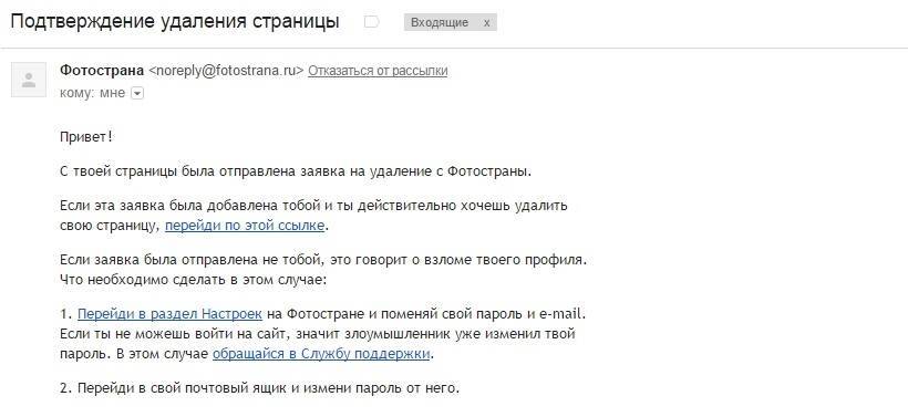 Выберите ссылку в электронном письме, чтобы отправить запрос на отказ.