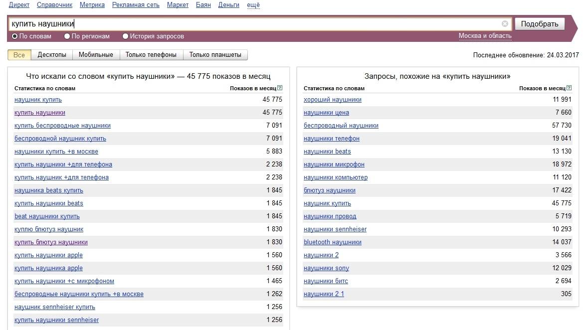 Кстати говоря, не забывайте использовать и русское написание брендов – «наушники сони», «наушники самсунг», «наушники битс» и пр.