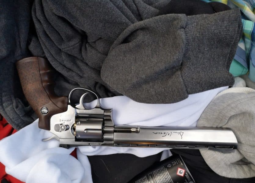 Лучше всего заряжать револьвер свинцовыми шариками, однако вполне допустимо использовать и более распространенные – омедненные, калибр зарядов составляет 4,5 мм. Этого удалось добиться благодаря гладкому стволу. Скорость вылета пули не очень высокая: она составляет всего лишь 116 метров в секунду. Одного баллона будет вполне достаточно для того, чтобы расстрелять свыше 80 зарядов. Масса продукции составляет 720 граммов в полностью готовом для стрельбы виде.
