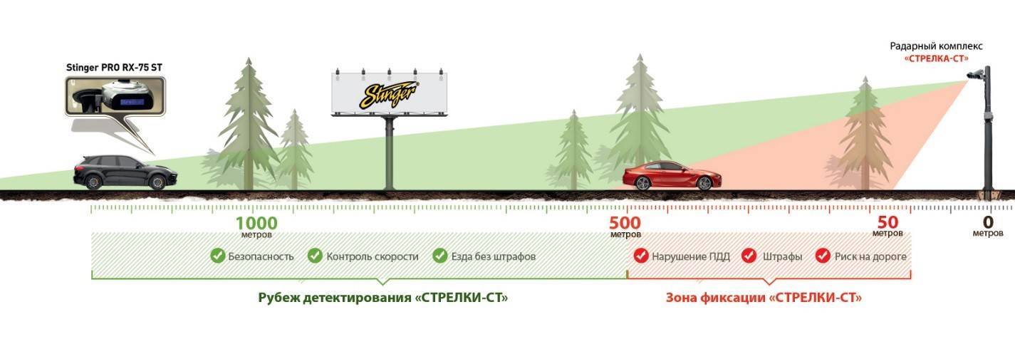2. Более дорогие модели предупреждают о радаре за 5 км. Но часто достаточно и 1 км, так как зона фиксации полицейского радара составляет 300 м, а зона фиксации скорости радаров «Стрелка» – 150 м.