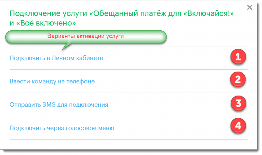 Способы активации услуги для клиентов с фиксированной абонплатой