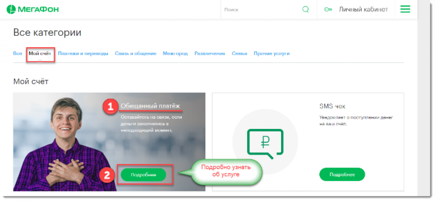 Дополнительный вариант — включить обещанный платеж на официальном сайте в личном кабинете www.beeline.ru: