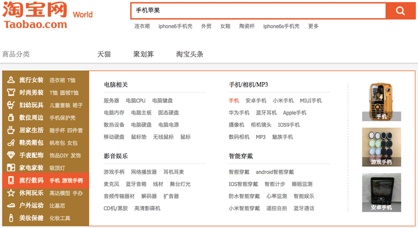 Для этого стоит вводить название искомого предмета иероглифами 手机苹果 (заранее переведя нужный термин с помощью БКРС). Вводя в строку поиска запрос на русском или английском языке, Вы значительно урезаете количество предлагаемых товаров (в названиях и описаниях большого числа качественных предложений пишут только иероглифами).