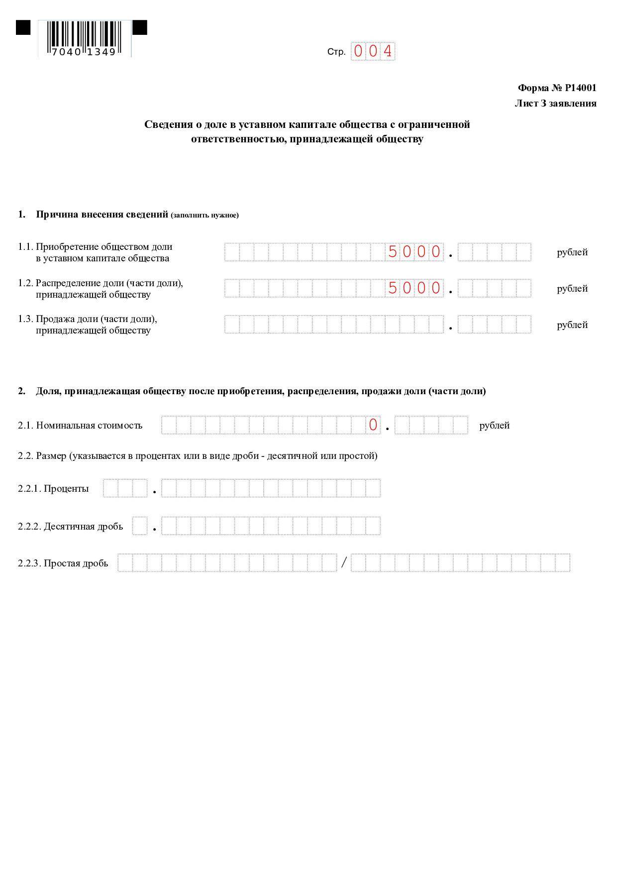 Во всех случаях в форме Р14001 заполняются не все листы, а лишь листы в зависимости от типа изменяемых сведений.