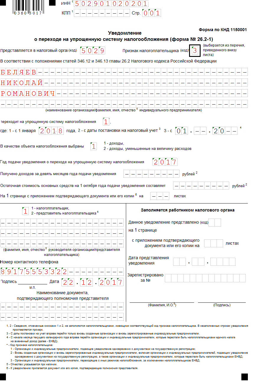 Порядок заполнения уведомления при переходе на УСН с иных режимов налогообложения