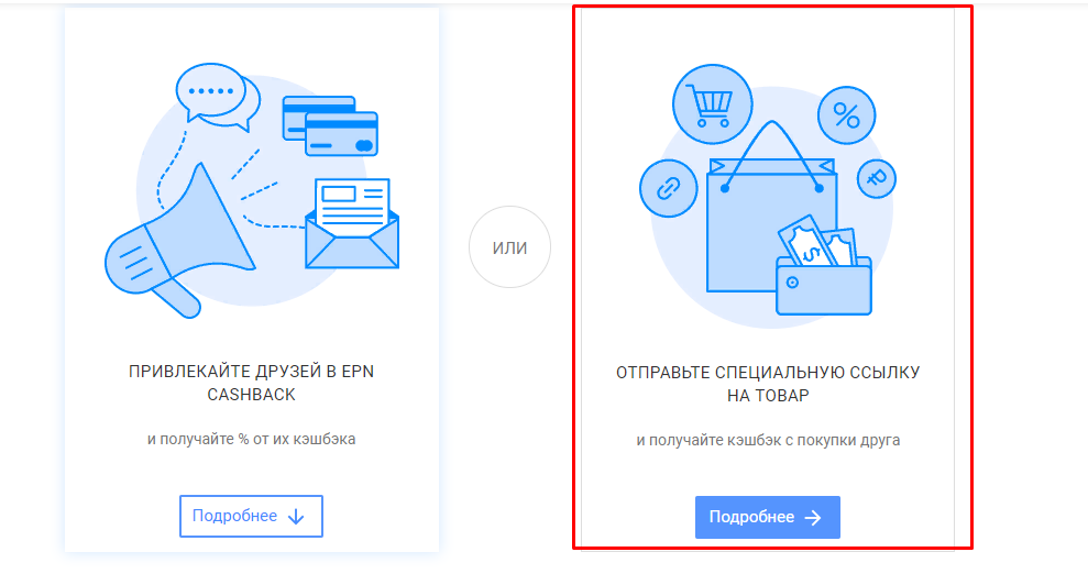 Шаг 3. В верхней части открывшейся страницы указаны условия работы данной системы. Ознакомьтесь с ними. Смысл в следующем – по созданной вами в данном разделе ссылке, пользователь попадает на страницу магазина с рекламой ЕПН. Если пользователь зарегистрируется на ЕПН, то станет простым вашим рефералом, если он купить товар, не зарегистрировавшись, то вы получите весь его кэшбек.