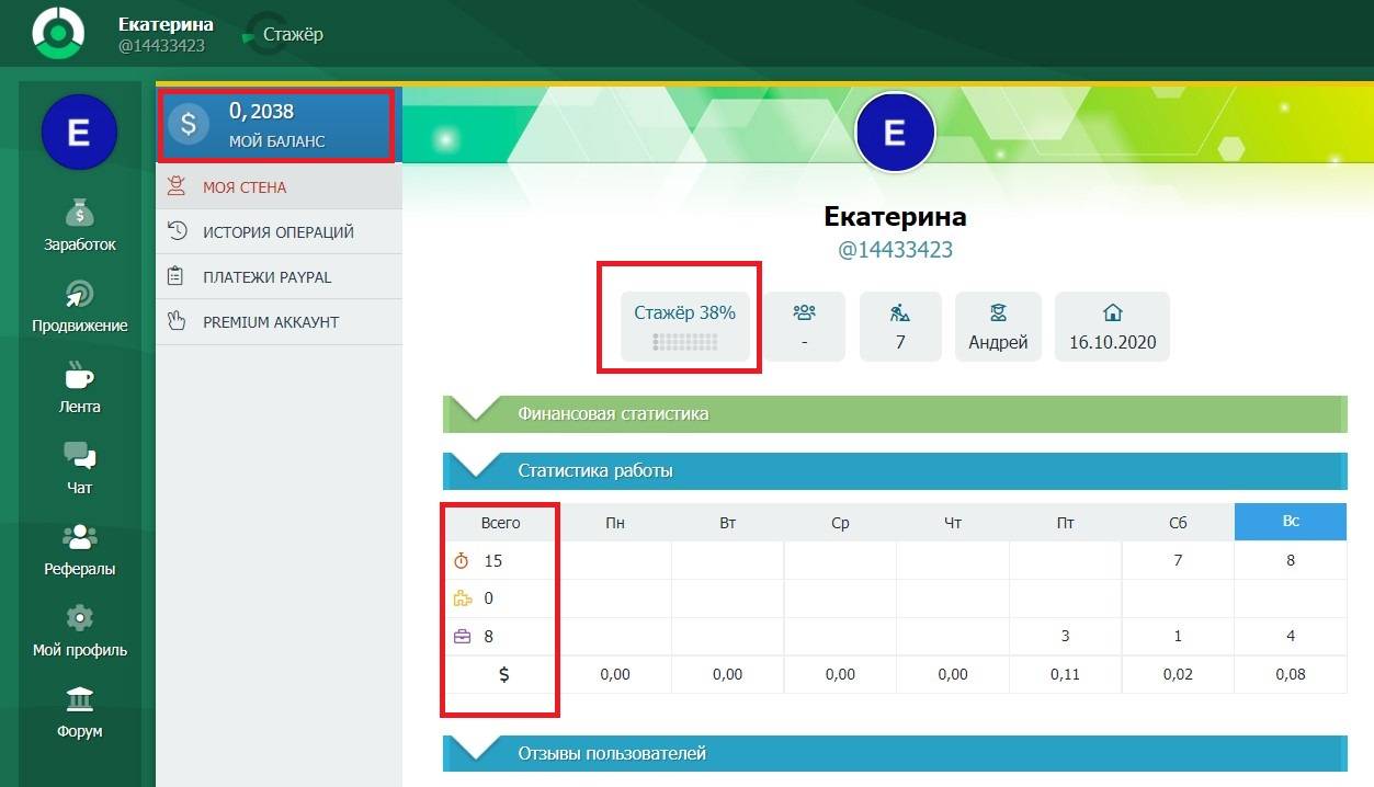 В результате, урывками за три дня, работая по чуть-чуть, в сумме за 1 час у меня получилось заработать 20 центов и повысить свой рейтинг Стажера до 38%!