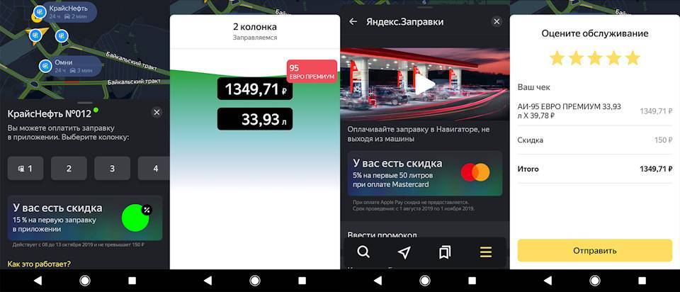 3. Возможность получения скидок.Сейчас “Яндекс” дал разовую скидку 150 руб, “MasterCard” за первые 50 литров еще 5% дает и тд.Плюсом никто не запрещает к Яндексу привязать кэшбэкную банковскую карту и по категории АЗС получать дополнительные бонусы.