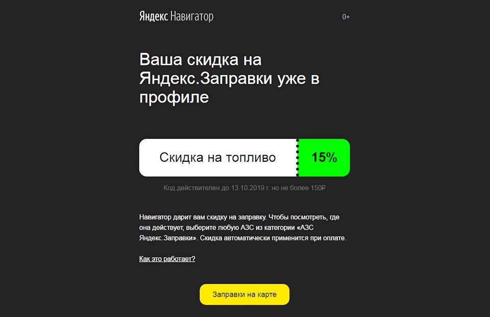 На днях неожиданно на почту упало письмо от “Яндекс Навигатора”.Никогда ничего не поступало ранее никогда, а тут, опа — предлагают скидку на топливо через сервис “Яндекс Заправки”.