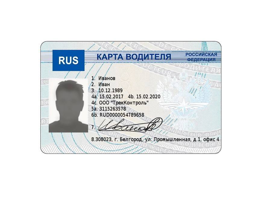 Карта водителя – чип в пластиковом корпусе, открывающий доступ к контролирующему прибору (бортовому самописцу). Каждая карта персонифицирована – она содержит полную информацию о водителе (ФИО, адрес, подпись, номер СНИЛС, срок действия и т. д.).