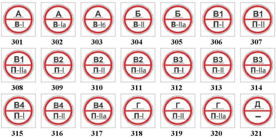 По показателю пожарной опасности все рабочие зоны согласно положениям действующих нормативов подразделяются на такие категории: