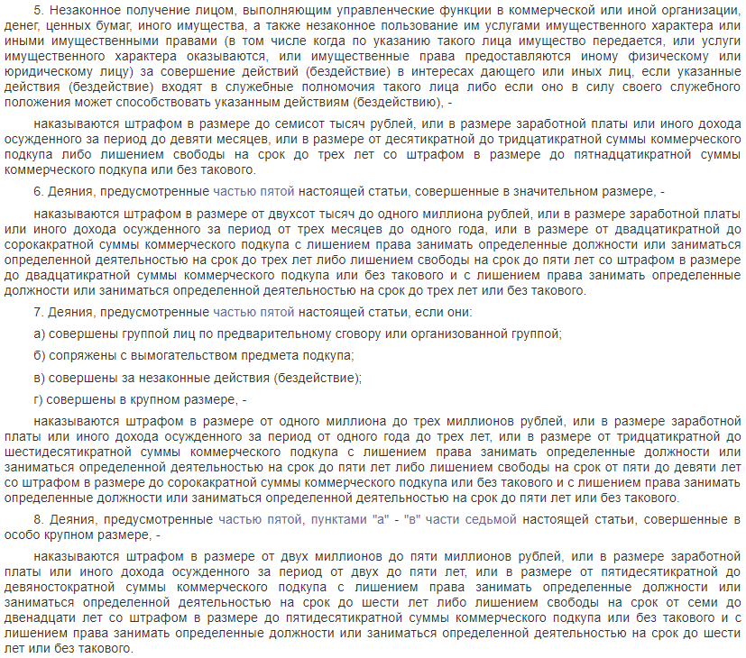 Пункты 5-8 же содержат информацию об уголовной ответственности лиц, принимающих подкуп: