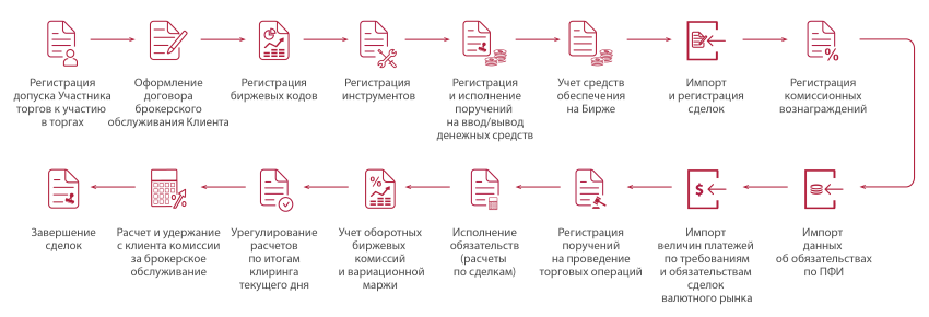 Биржевые сервисы от МБ полностью защищают клиентские средства от неторговых рисков, предоставляют возможность открытия торгово-клиринговых счетов двух уровней, а также используют специальные алгоритмы прямого вывода клиентов на валютные торги.