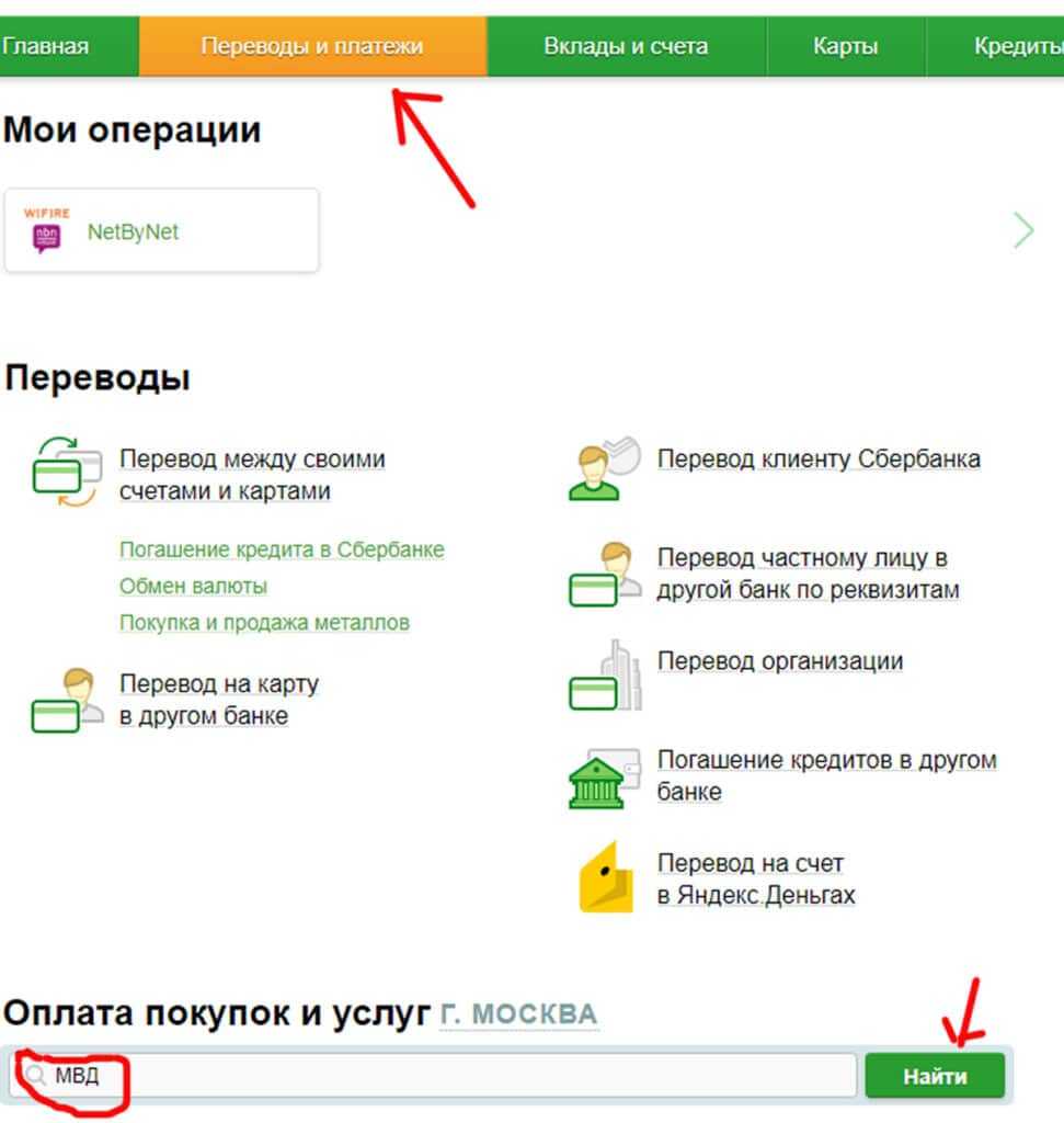 Заходите в ваш Сбербанк онлайн, переходите «Переводы и платежи», опускаетесь немного ниже в «Оплату покупок и услуг».