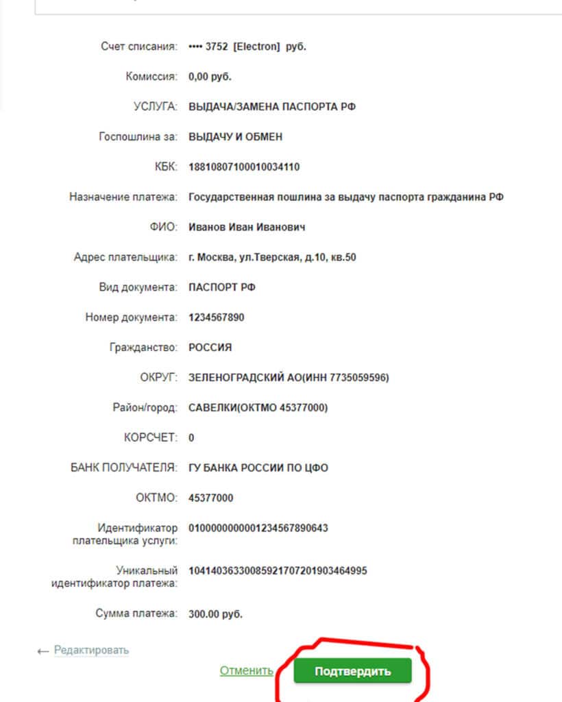 188 1 08 07100 01 8034 110 | за выдачу паспорта гражданина РФ через МФЦ, 300 руб. |