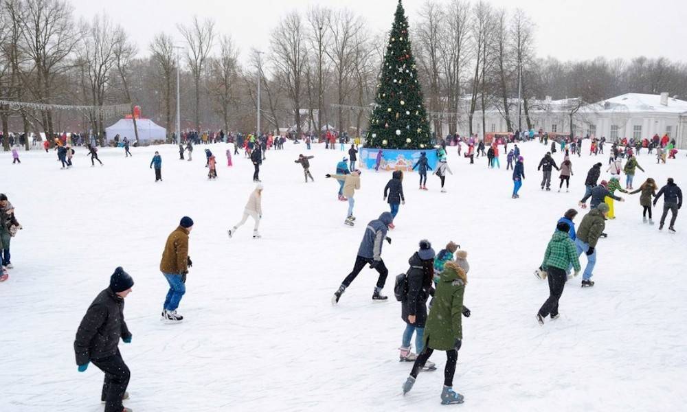 - Каток на Елагином острове. Если не решили, куда пойти на Новый год в Санкт-Петербурге, посетите бесплатный каток на Елагином острове. Здесь же находится большая елка, каток освещен иллюминацией.
