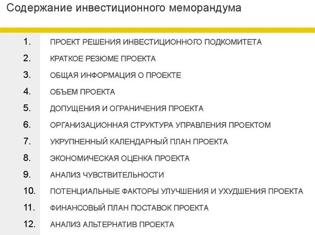 Как готовится инвестиционный меморандум