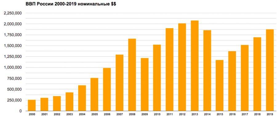 Положительная динамика наблюдалась до начала мирового кризиса 2008-2009-го. Затем ВВП снова стал расти, отыгрывая резкое падение — вплоть до “крымской весны”. Потом санкции, перестройка экономики на работу в новых условиях — и вновь постепенный рост, основанный на импортозамещении и крупных инфраструктурных проектах.