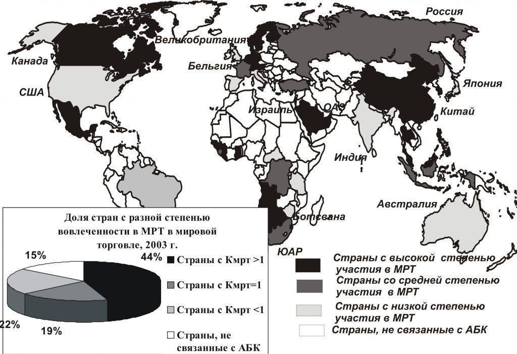 Степень включения каждого из них в МР в конечном счете определяется типом и степенью включения каждой страны в МРТ и может выражаться соответствующей долей в общем его объеме