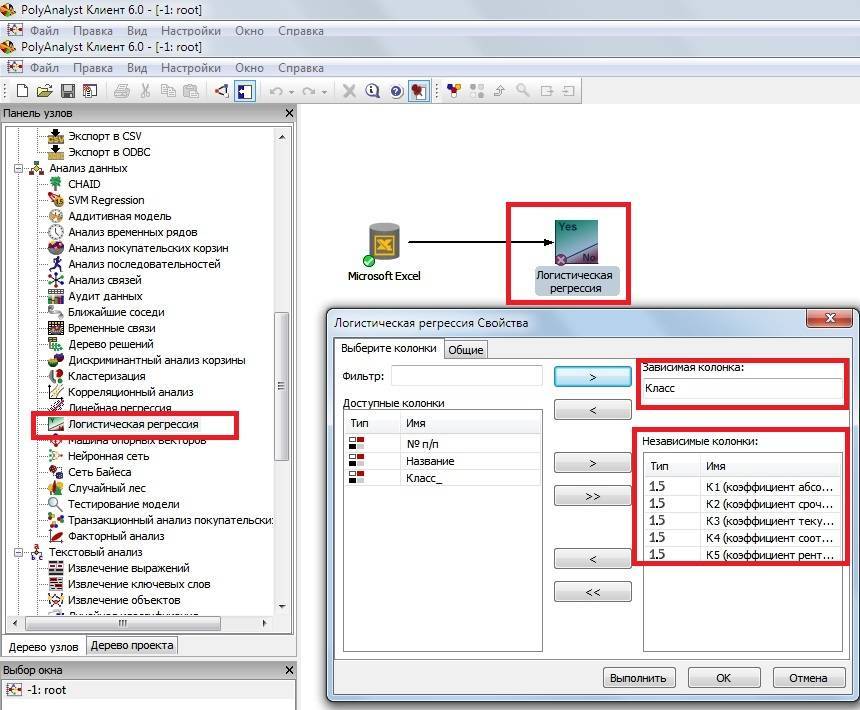 Логистическая модель оценки вероятности банкротства в PolyAnalyst
