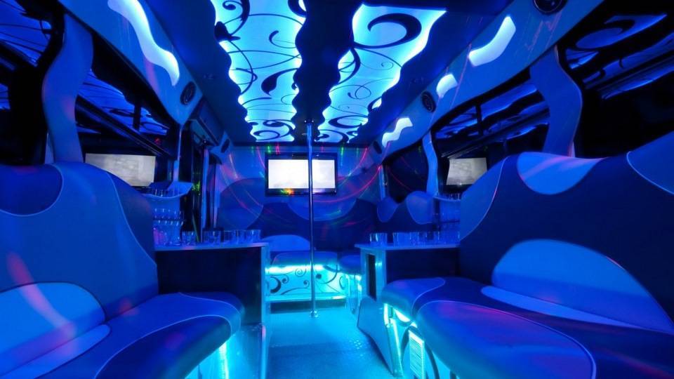 В зависимости от модели автобуса, в салоне можно разместить до тридцати человек. Большая компания отдыхает на диванах, у барной стойки, на танцполе. Просторный салон party bus позволяет провести праздник среди родственников и друзей с комфортом. Диджей, бармен и водитель не дадут гостям заскучать.