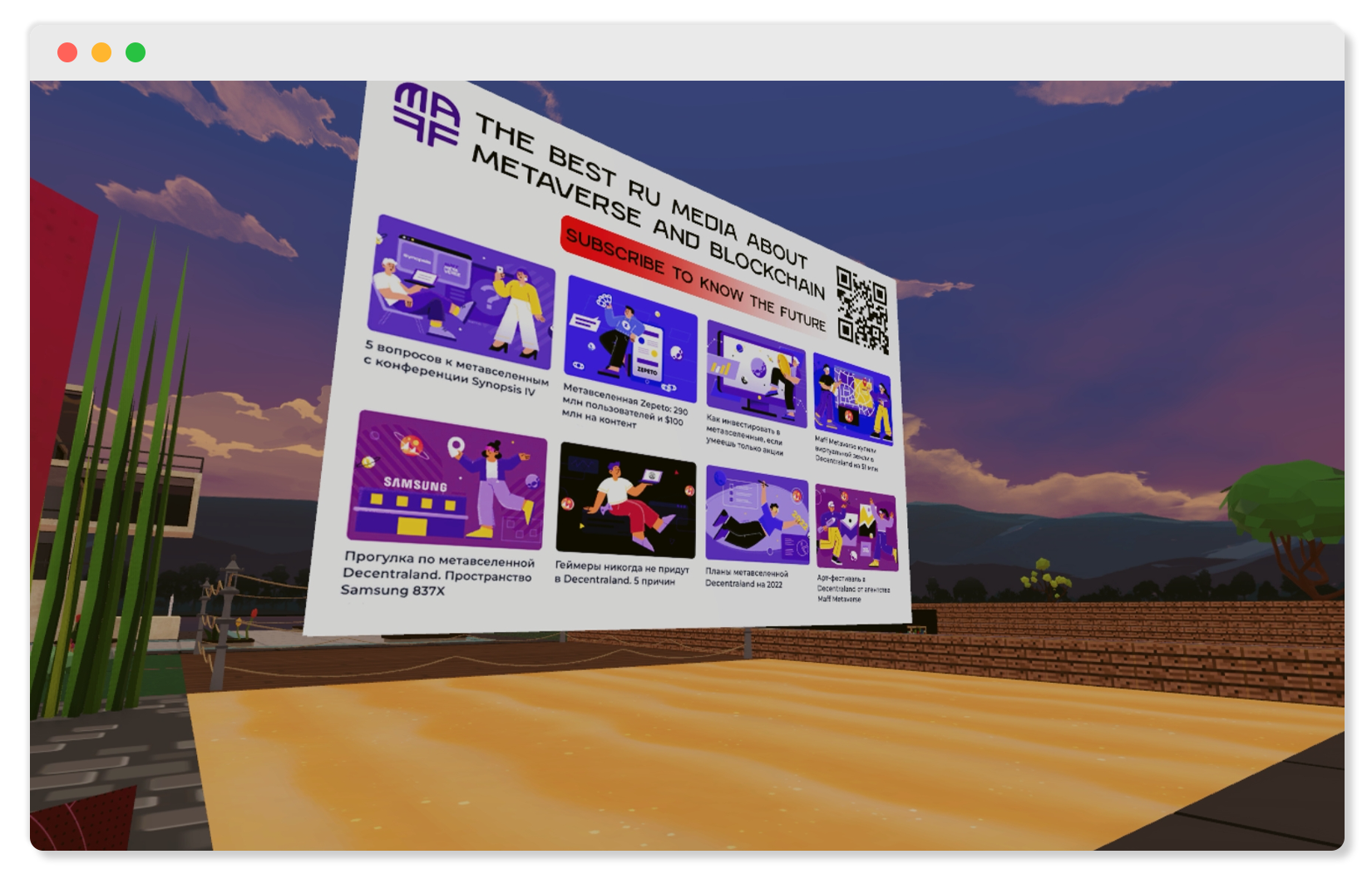 Но пока в Decentraland реклама выглядит именно как баннер на веб-сайте