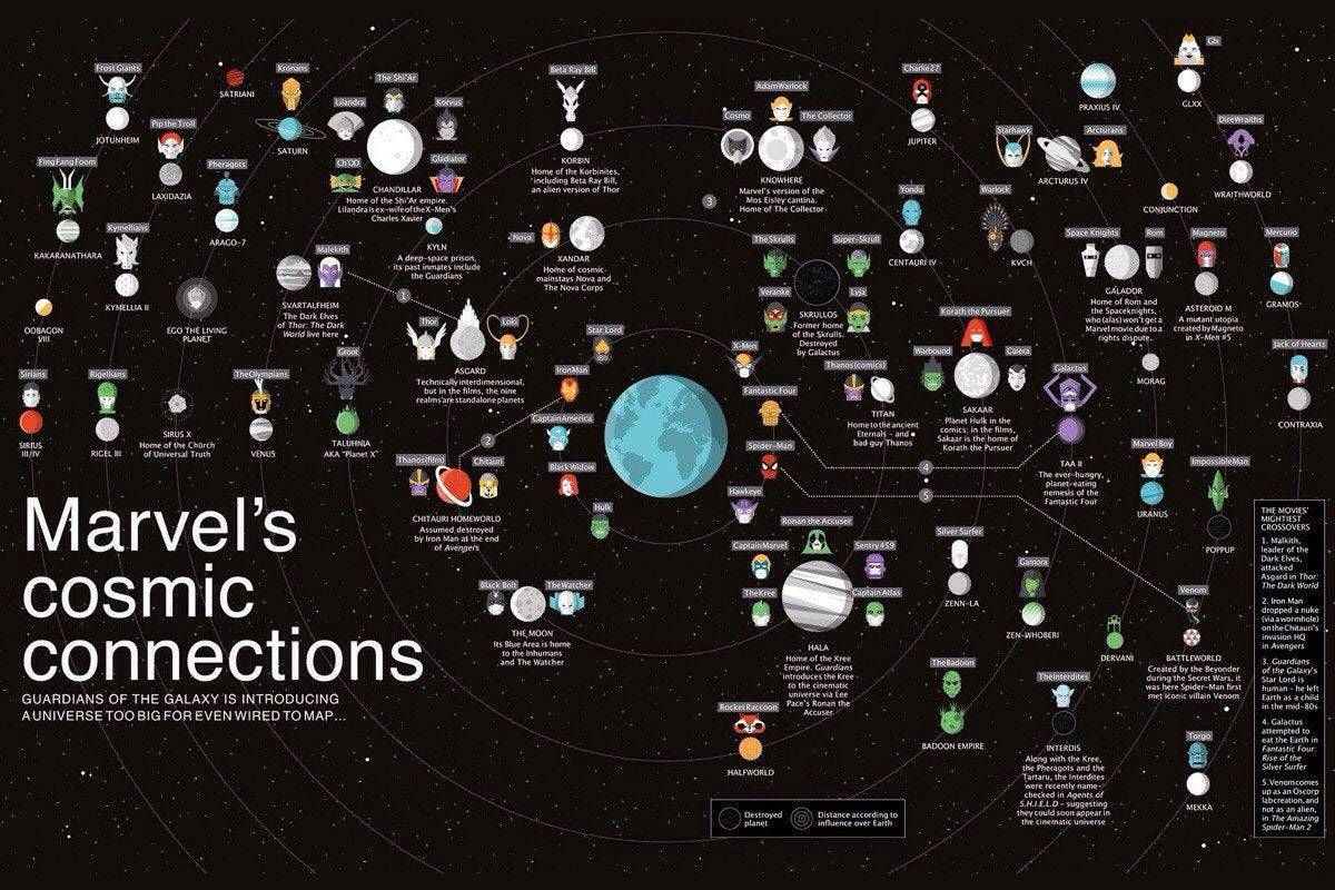 Поверхностная карта одних только космических взаимосвязей во вселенной Marvel от Wired