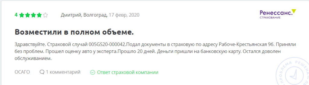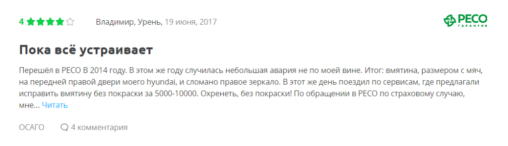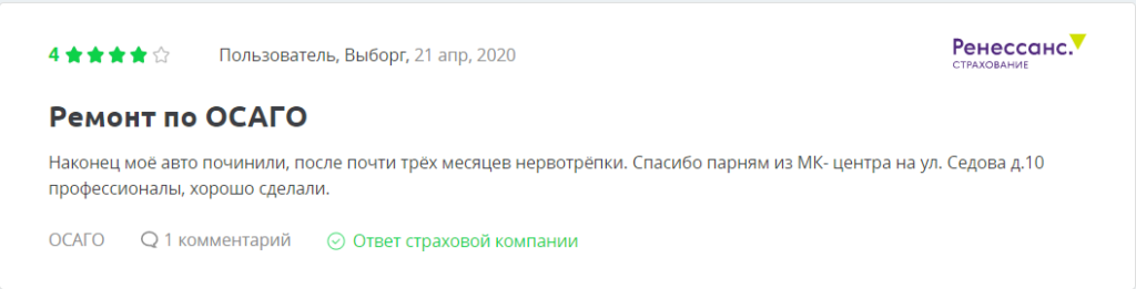 - По отзывам насчет полисов ОСАГО осмотр и ремонт после аварий производят оперативно.