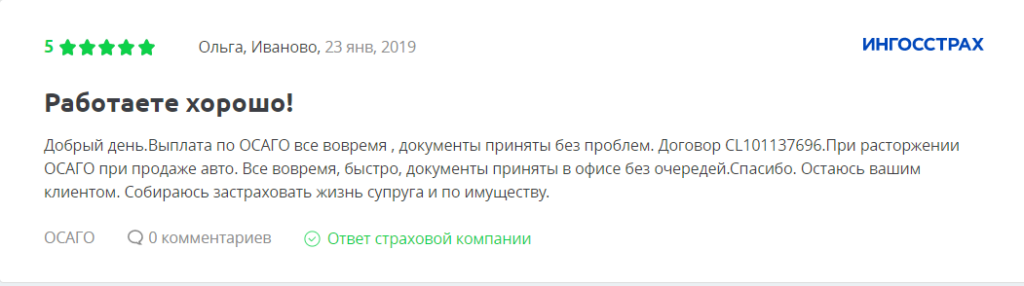 - Компания зарекомендовала себя как одна их самых стабильных на страховом рынке. Наш сервис сотрудничает с этой компанией, и за все время серьезных нареканий не выявлено.