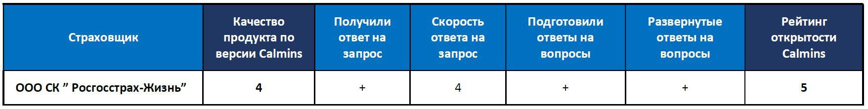 За помощь и готовность сотрудничать мы с уверенностью ставим страховой компании Росгосстрах-Жизнь оценку “5” в рейтинге открытости Calmins.