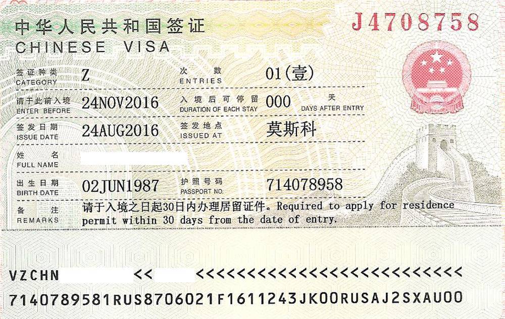 - рабочая виза (Z) – выдается для въезда на 30 дней и подлежит обмену на ВНЖ по месту жительства в КНР;
