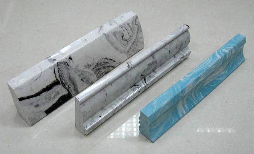 В зависимости от того, какие смолы и наполнители выбраны, материал может быть выполнен как имитация натурального мрамора, яшмы, гранита, малахита, оникса.