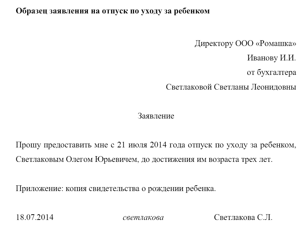 Пример заявления на получение декретного отпуска