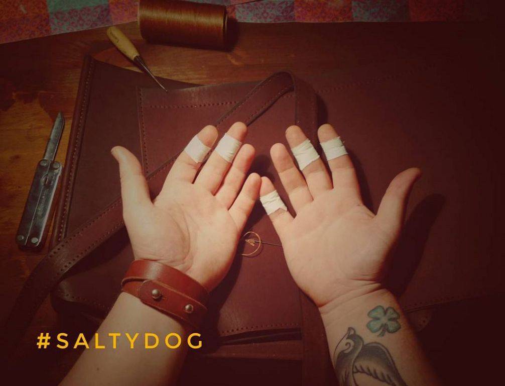 Для начала осмотрим шило. Лучше, если его рабочее острие будет иметь форму клинка. В этом случае стежки будут укладываться в канавки, оставляемые боковыми гранями острия шила. Шило для кожи характерно именно такой формой острия. Круглые шила также вполне подойдут для работы. А для получения канавок его, шило, можно немного раскачать после прокалывания скрепляемых деталей. Главное не переусердствовать. При первом продевании иглы само шило можно удобно перехватить правой рукой.