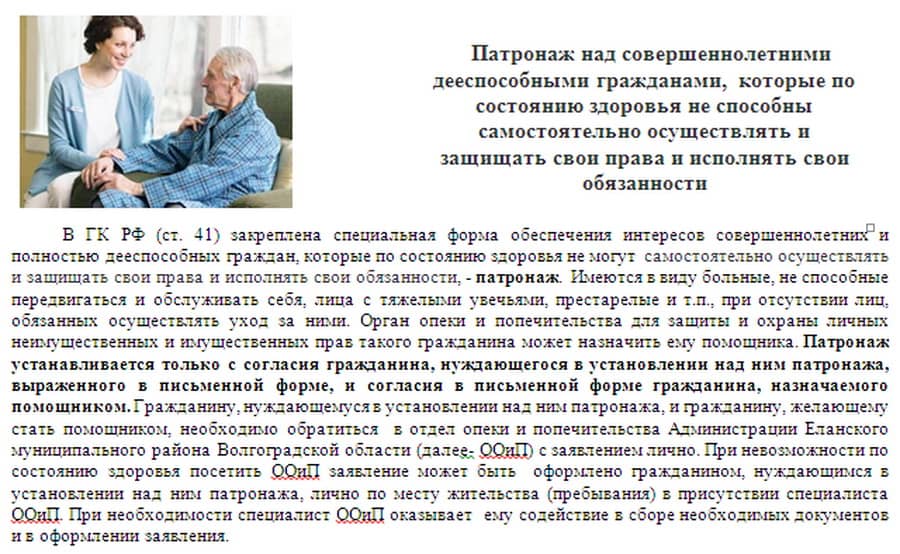 - опекунство над престарелыми людьми в форме патронажа можно оформлять, если инвалидность связана с физическими, а не психическими расстройствами.