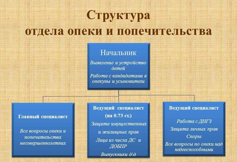 Органы опеки представляют исполнительную власть в регионах и защищают права и свободы детей, а также недееспособных граждан. Поэтому есть два основных подотдела: