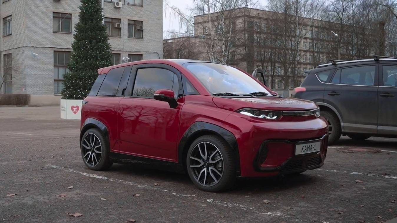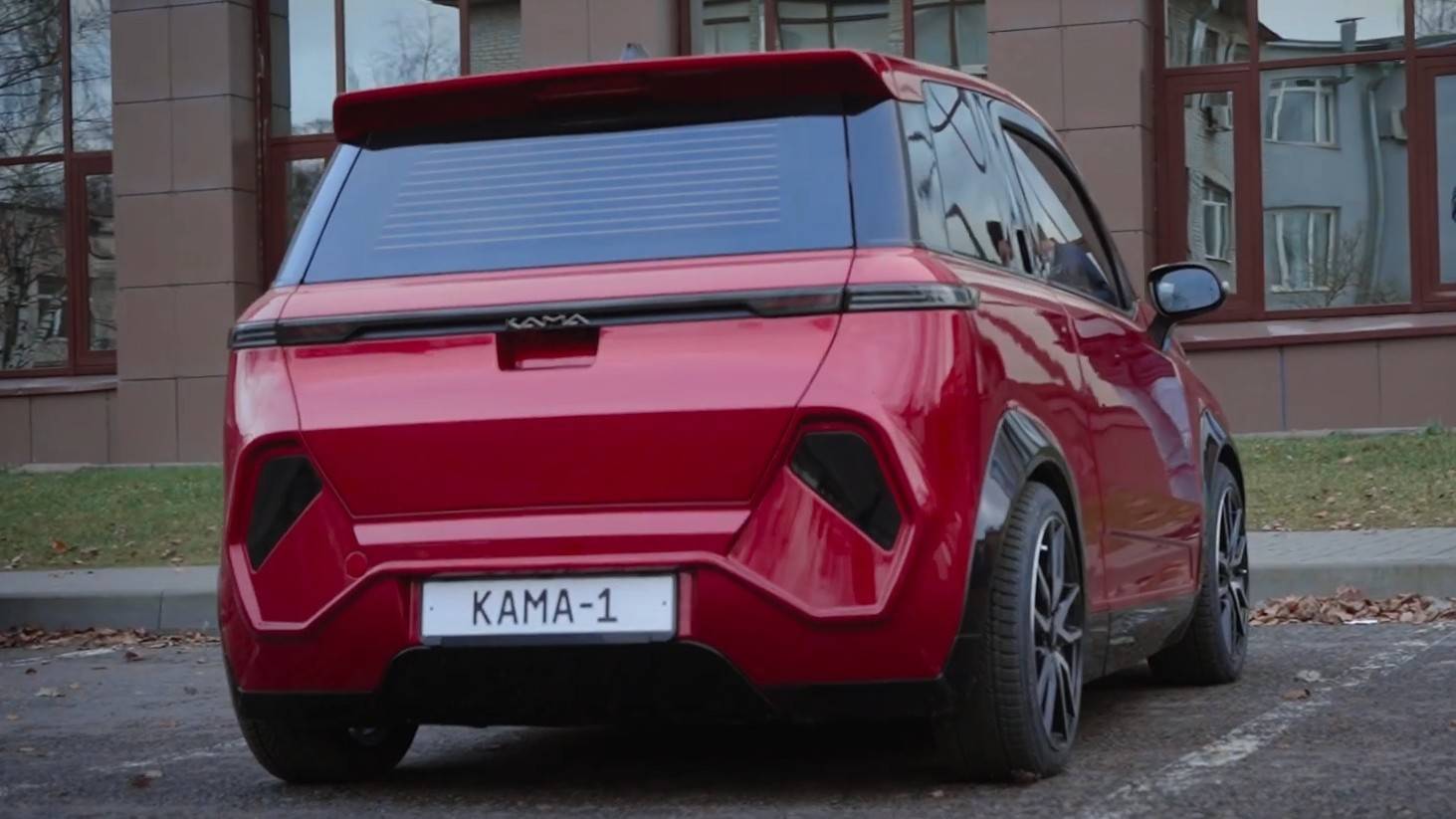 Электромобиль с современным комплексом водительских ассистентов получил название «Кама-1». Он представляет собой трехдверный четырехместный хэтчбек длиной 3,4 метра, шириной 1,7 метра и высотой 1,6 метра. Он получил литий-ионный аккумулятор емкостью 33 киловатт-часа и электромотор мощностью 80 киловатт, что позволяет ему развивать скорость до 150 км/ч и проезжать до 250 километров на одной зарядке.