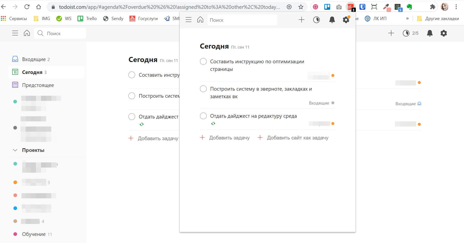 Сервис активно развивается, список функций и возможностей постоянно растёт. На момент работы над статьёй в Todoist можно: