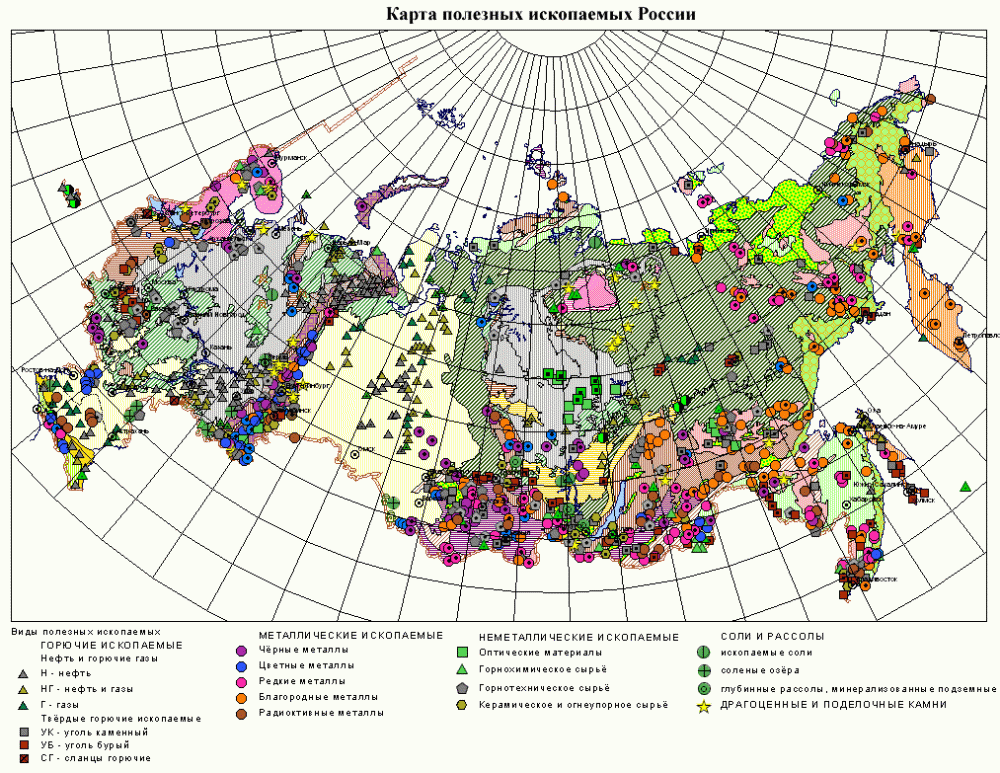Обратившись к географии, можно отметить, что месторождения минеральных ресурсов на территории России расположены неравномерно. Большинство из них находятся в Арктике, на Урале и в Восточной Сибири.