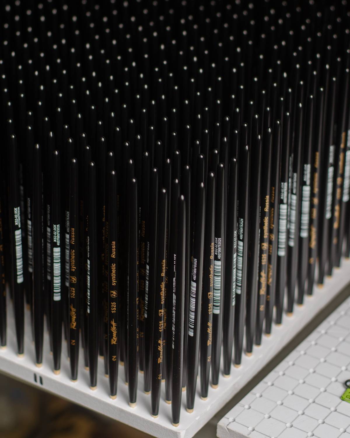 Кончик кисти — противоположная от мазка сторона — не влияет на качество работы кисти, но именно по тому, насколько качественно и одинаково сделано скругление на всех кистях одной партии, можно оценить культуру производства. Сделать одинаково качественно, не имея должного оборудования, невозможно.
