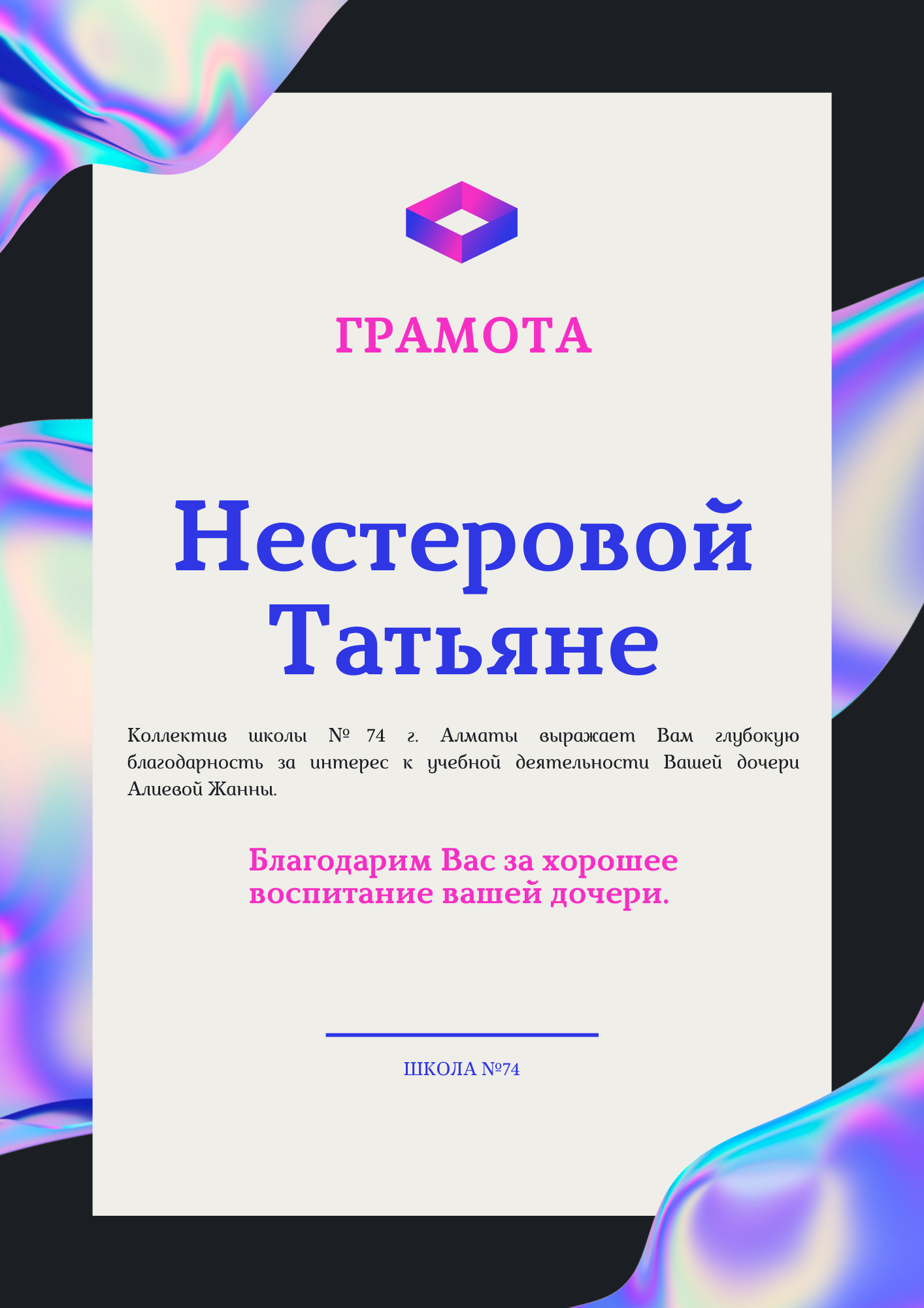 Вам глубокую благодарность за интерес к учебной деятельности Вашей дочери Алиевой