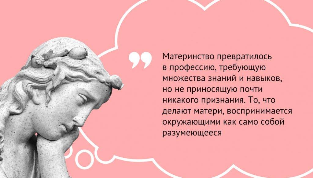 Одновременно с этим женщины считают, что должны быть идеальными мамами. Они стремятся всё делать правильно, однако требования, которые общество предъявляет к матерям, порой завышены и недостижимы: быть безупречной «супермамой» для «суперребенка» и каждый день доказать, что у них всё под контролем.