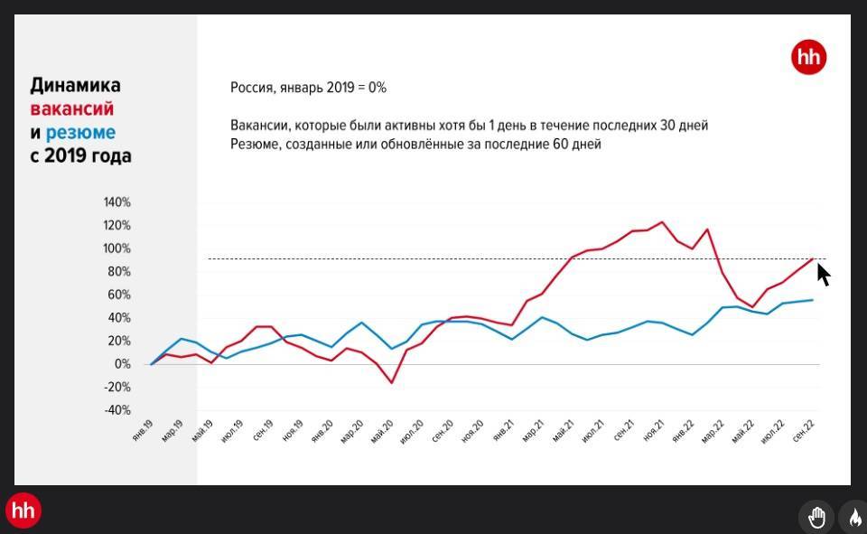 Одной из особенностей октября стало то, что мужчины перестали брать трубки с незнакомых номеров, рекрутерам стало сложно дозвониться. «Недозвон» составлял 50% по оценкам НН. В каких-то отраслях, например, на работу в строительство — до 70%, что прямо катастрофично особенно в крупных городах. После того как регионы стали отчитываться о выполнении мобилизации в начале ноября, проблема стала сокращаться. Но в целом этот канал связи сокращается — люди стали бояться звонков с незнакомых номеров — мошенников, рекламы.