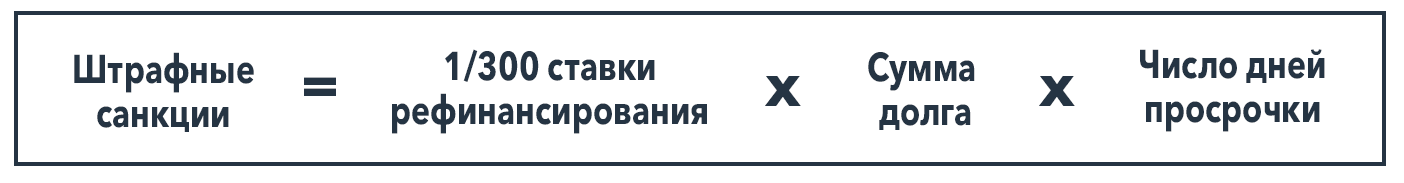 Пени = Недоимка x Количество календарных дней просрочки x 1/300 х Ставка рефинансирования